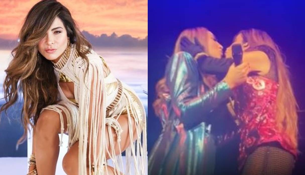 El momento que desató la emoción y gritos de los fans que acudieron a escuchar los éxitos de las famosas se dio casi al finalizar el show, cuando la intérprete de “Ojos cerrados” se acercó a su compañera y tuvieron el acercamiento físico.