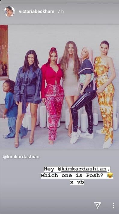 La foto en mención se volvió viral y llegó hasta las redes de Victoria Beckham, exintegrante original de las Spice Girls. La cantante y amante de la moda tomó con mucho humor la instantánea de Kim Kardashian y le dedicó un historial de Instagram.