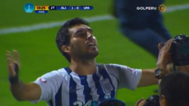 Germán Pacheco le pegó al primer palo de Carlos Cáceda, arquero de Universitario de Deportes, que hizo un mal movimiento y ya no pudo reaccionar con la pelota del argentino.