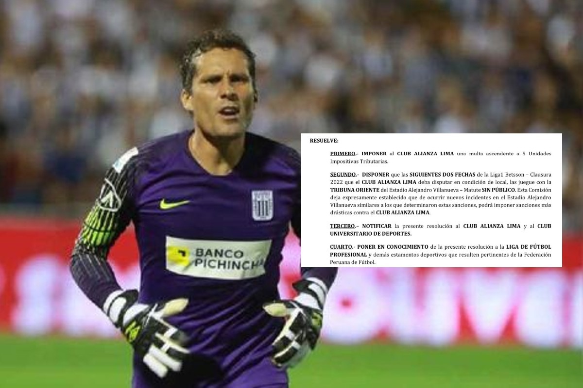 La primera sanción fue pecuniaria. La Comisión de la FPF decidió imponer a Alianza una multa de 5 Unidades Tributarias, una suma final de 23 mil soles.