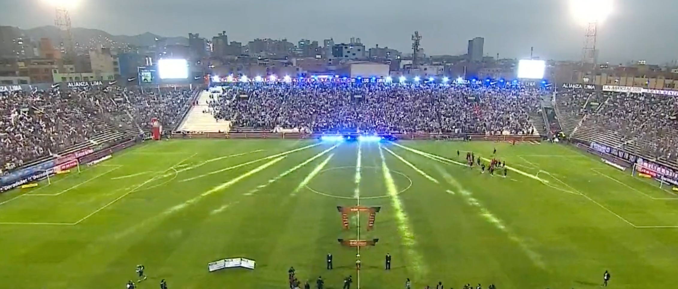 Todo listo para el momento cumbre del torneo peruano. Alianza Lima se enfrentará a Melgar por el partido de vuelta de la final de la Liga 1 en el estadio Alejandro Villanueva. Durante la previa del encuentro se pudo observar sorprendente juego de luces que iluminaban todo el campo de juego y a los hinchas blanquiazules.