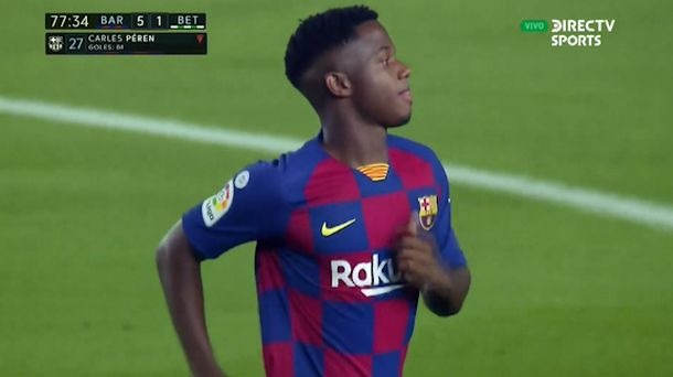 Ocurrió a los 78' del segundo tiempo, cuando Barcelona goleaba 5-1 a Real Betis en el Estadio Camp Nou. Ansu Fati ingresó en lugar de Carles Pérez para jugar sus primeros minutos con Barcelona de Lionel Messi, ausente por lesión.