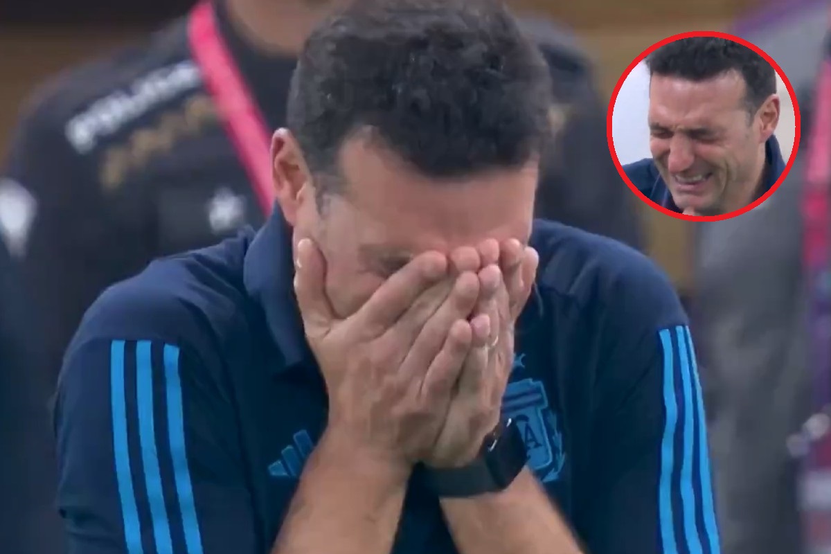 En las imágenes de la transmisión se puede ver como Scaloni, después del penal pateado por Gonzalo Montiel, se persigna y rompe a llorar como un niño. La emoción lo había invadido.