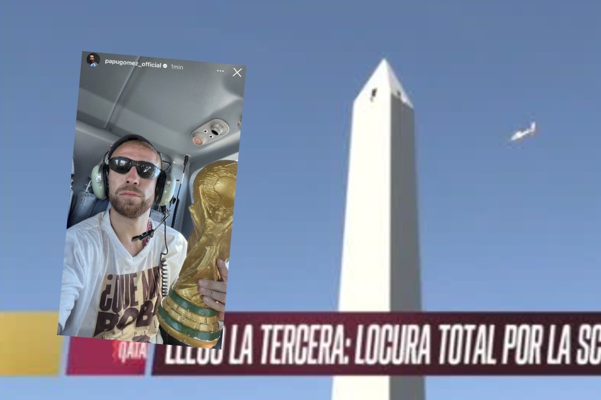 Los jugadores de la selección albiceleste tuvieron que tomar turnos para sobrevolar la Plaza de Mayo y el Obelisco en helicóptero, en una especie de vuelta olímpica por los aires. Algunos de los futbolistas como Enzo Fernández y Alejandro ‘Papu’ Gómez. subieron fotos a sus redes sociales mientras se trasladaban por vía aérea.