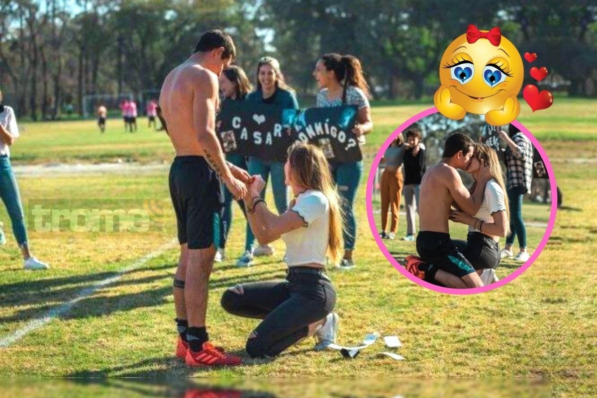 Franco entendió todo cuando vio que Rocío, su enamorada, le enseñó un anillo de plata dentro de una cajita y delante de los otros 21 jugadores y los espectadores en el Liceo Militar le dijo: “¿Te quieres casar conmigo?” La reacción del jugador fue sacarse la camiseta, también arrodillarse para abrazarla y sellar el momento con un beso.