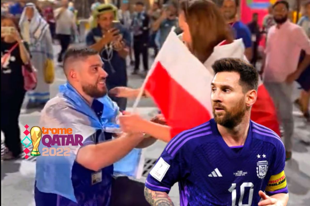 La posibilidad que selección argentina avance a la siguiente ronda de Qatar 2022 fue el motivo que impulsó a un basquetbolista gaucho e hinchas la albiceleste para que decida pedir matrimonio a su novia polaca, antes de enfrentar a la selección de Polonia en el Estadio 974 y sabiendo que después de 90 minutos uno de los dos podría fuera de la copa del mundo.