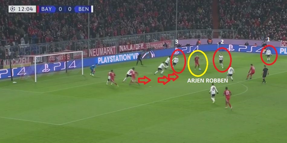 El primero ocurrió a los 13' del partido. Arjen Robben se sacó hasta 3 rivales de Benfica y remató a un lugar imposible para el meta Vlachodimos.