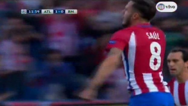 Apenas a los 12' de iniciado el encuentro, tras un centro de Koke, el mediocampista de Atlético Madrid, Sául, apareció en el corazón del área y puso el 1-0 parcial para los colchoneros en el duelo de vuelta por Champions League.