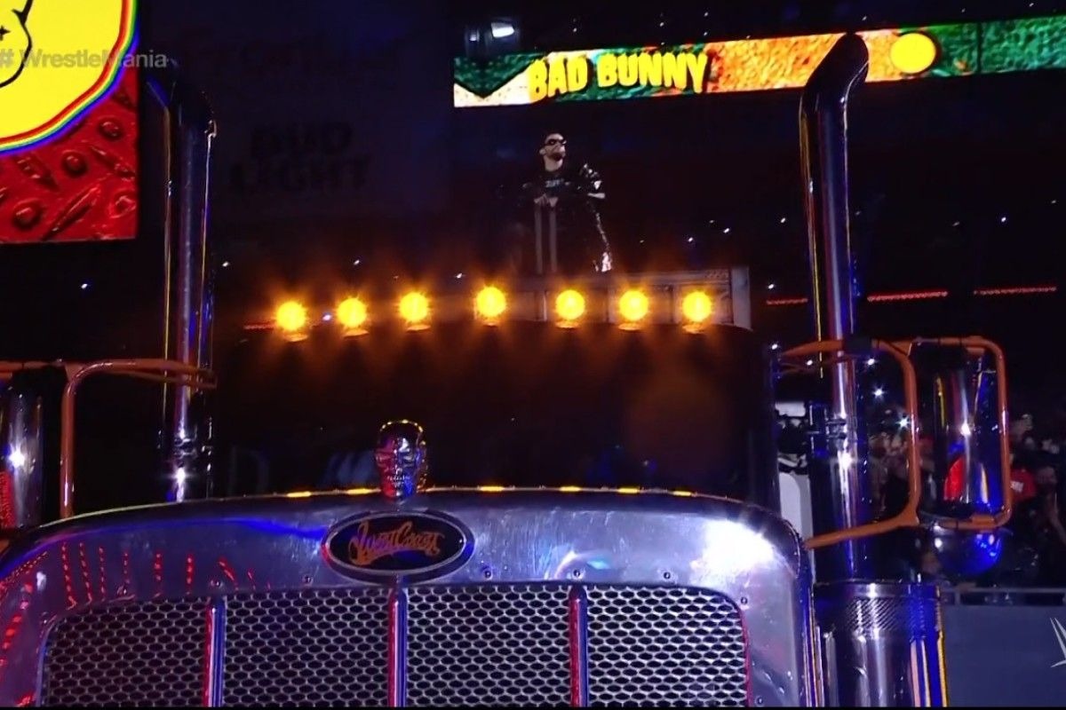 Una entrada a la altura de una superestrella mundial. Bad Bunny hizo su ingreso a WrestleMania a bordo de su enorme tráiler personalizado, que dejó impresionados a todos los asistentes al Raymond James Stadium, donde se llevó a cabo el primer día del magno evento de WWE.