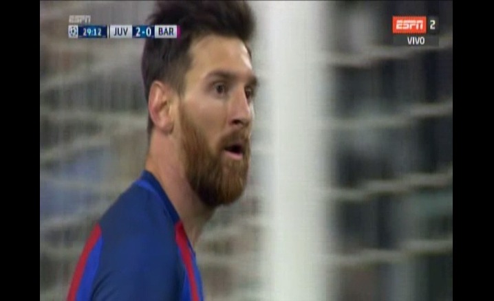 Lionel Messi se quedó con las ganas de gritar el primer gol del Barcelona ante la Juventus que le gana 3-0 en Turín por el partido de ida de cuartos de final de la Champions League.