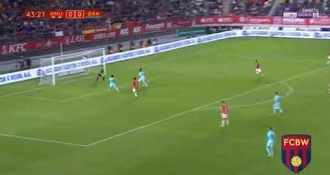 A poco del final de la primera parte por la Copa del Rey. un gran centro Deulofeu desde el sector derecho del campo terminó en gol para Barcelona frente a Murcia en condición de visita.