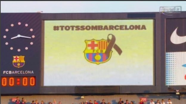 Barcelona y Real Betis realizaron emotivo minuto de silencio en el Estadio Camp Nou en memoria a las víctimas del atentado terrorista en una de las calles más populares de la cuidad de Barcelona, La Rambla.