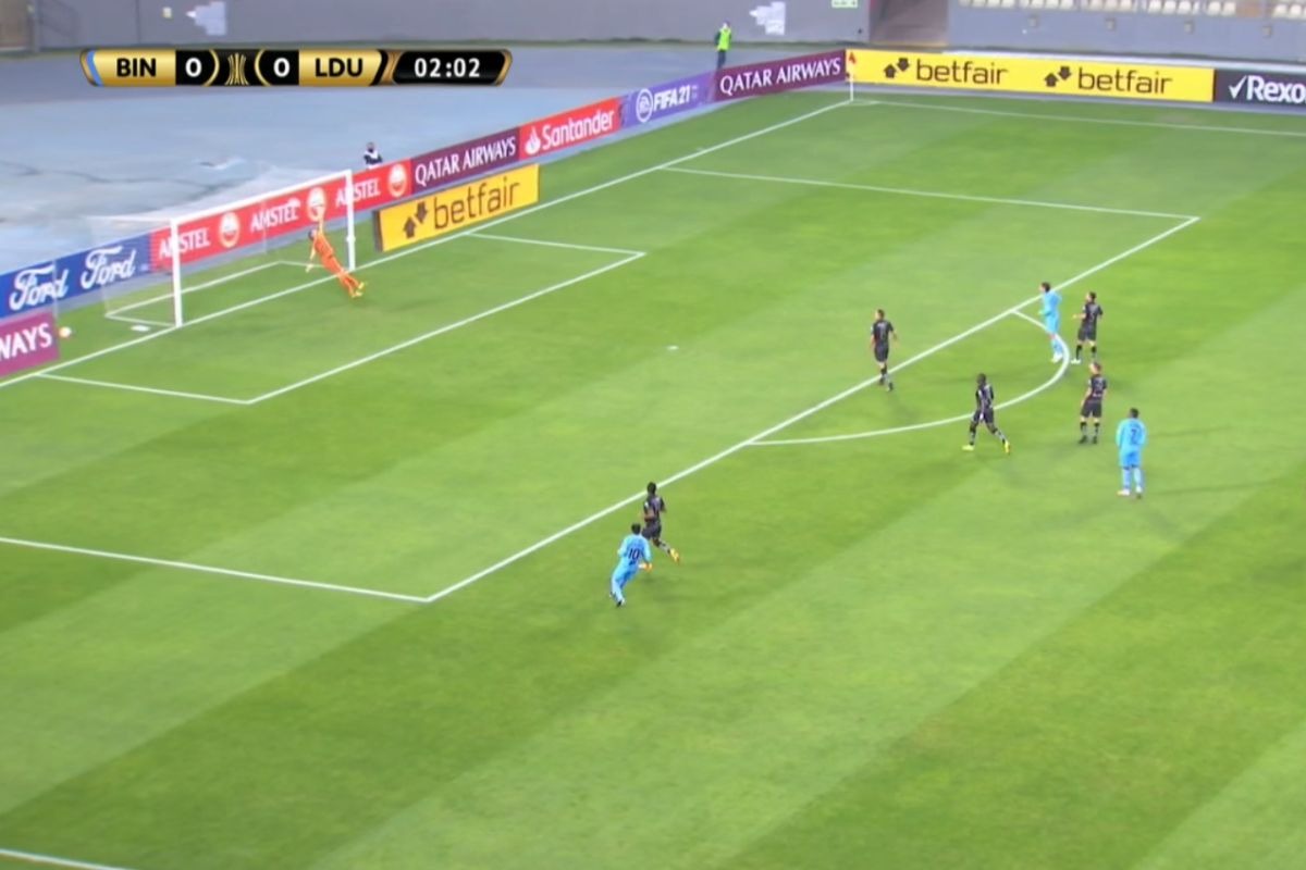 Ocurrió al minuto 2 de la primera parte. Binacional recuperó una pelota y por poco consigue abrir el marcador en el certamen continental. El artífice la jugada fue el colombiano Johan Arango.