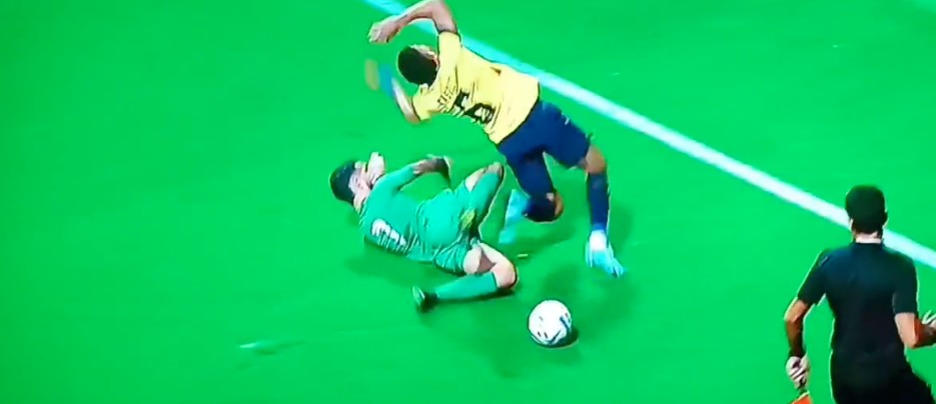El lateral salió disparado por la banda derecha, por donde estaba desbordando y disputando el balón con el futbolista de Irak. En el intento de Byron de mantener el esférico recibió un fuerte golpe en la pierna izquierda, en la parte baja de su tobillo.