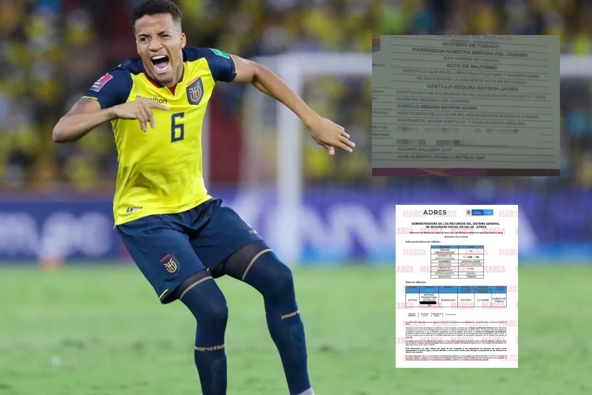 La partida de nacimiento detalla que el jugador fue bautizado el 25 de diciembre de 1996 en la Diócesis de Tumaco (Nariño, Colombia). En el segundo documento refleja que Castillo está incluido en la ‘Base de Datos de Afiliados al Sistema de la Seguridad Social en Salud’ de la mencionada localidad colombiana.