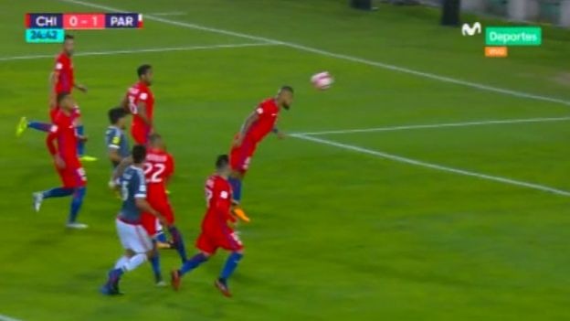 Arturo Vidal marcó un gol en su propio arco, con golpe de cabeza, en su intento por darle despejar el área y dar pase a su compañero en portería, Claudio Bravo.