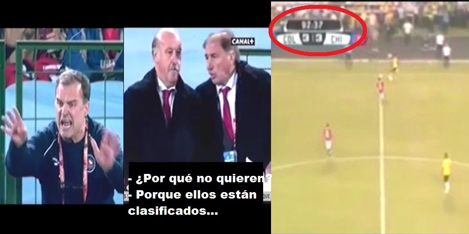 Perú empató con Colombia y lo minutos finales generaron polémica. Los medios chilenos especulan con un reclamo a FIFA, por un supuesto 'arreglo de partido', pero Chile, fue protagonista de dos situaciones similares en el Mundial Sudáfrica 2010 y las Eliminatorias Brasil 2014.
