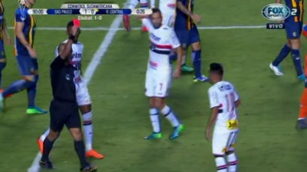 Christian Cueva, que había ingresado en el minuto 55 de la segunda parte, metió un 'planchazo' a jugador de Rosario Central a los 91' del partido, cuando Sao Paulo ganaba 1-0.