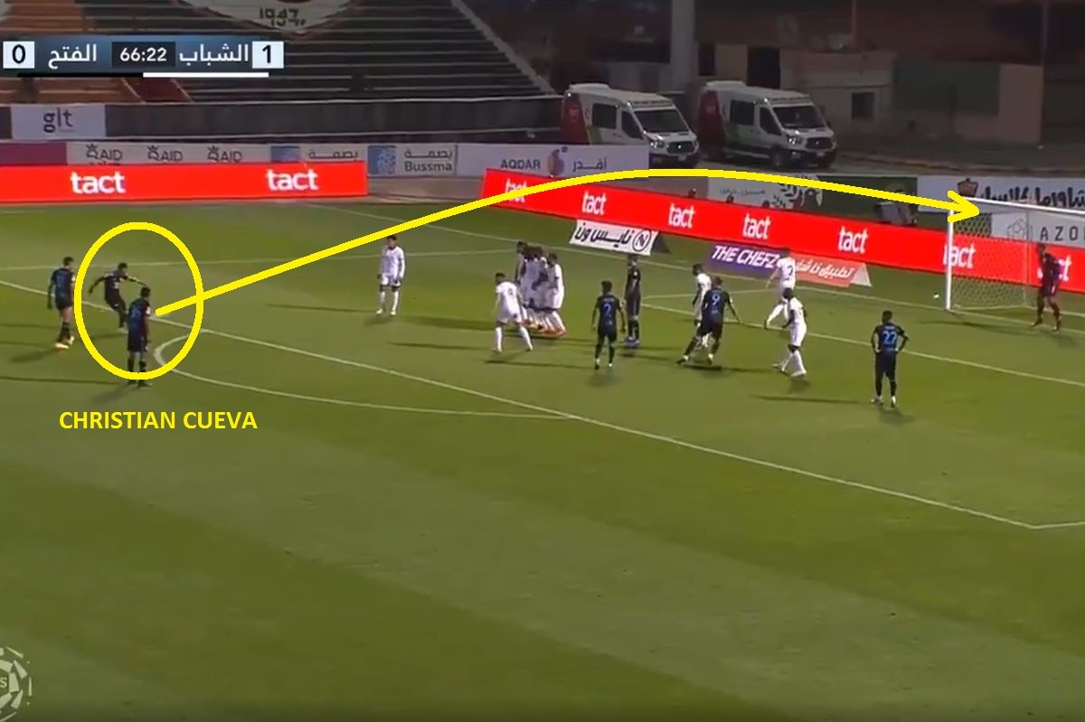El tanto de Christian Cueva llegó a los 67′ del segundo tiempo, cuando Al Fateh perdía 1-0. El popular ‘Aladino’ se paró en un tiro libre e hizo pasar la pelota por encima de la barrera de Al Shabab.
