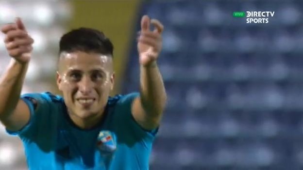 Christian Ortiz logró así el 2-0 de Sporting Cristal frente a Unión Español en el Estadio Alejandro Villanueva de Matute por el pase a octavos de final de Copa Sudamericana.