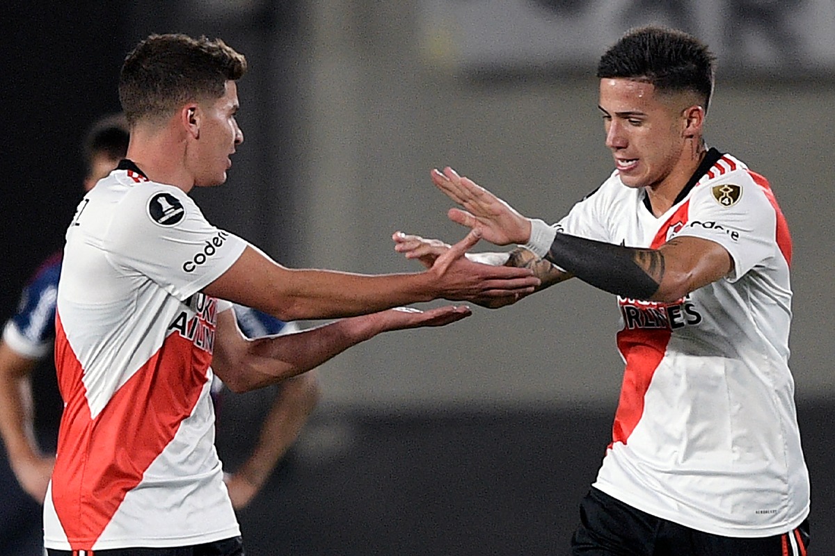 River Plate: Franco Armani - Andrés Herrera, Paulo Díaz, David Martínez y Milton Casco - Enzo Fernández, Enzo Pérez, Nicolás De la Cruz - Santiago Simón o Juan Fernando Quintero, Matías Suárez y Julián Álvarez.
