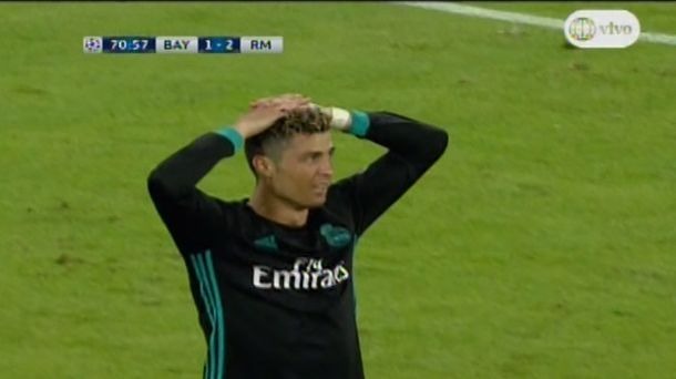 El línea levantó el banderín y el tanto de Cristiano Ronaldo con fue validado ante Batern Munich. El portugués reclamó la jugada indicando que le pegó en el hombro.
