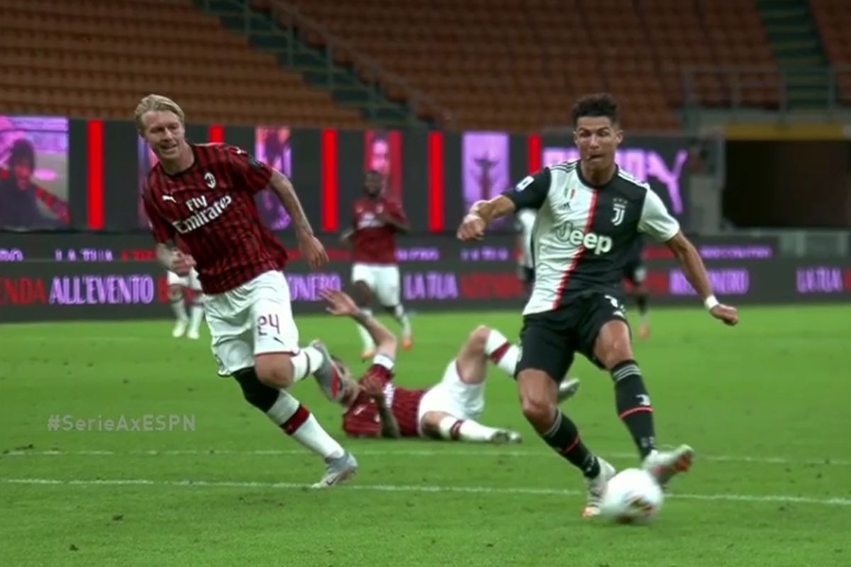 La defensa de Milan (Kjaer y Romagnoli) cometió un ‘blooper’ en el lanzamiento y Cristiano Ronaldo aprovechó de gran manera para anotar con Juventus.