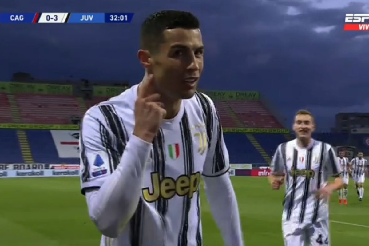 Cristiano Ronaldo marcó triplete a los 32′. Recepcionó un pase de Federico Chiesa, ‘rompió’ cintura a defensa de Cagliari y sacó un potente remate para ‘romper’ las redes del cuadro rival. Aquí abajo todas las imágenes.