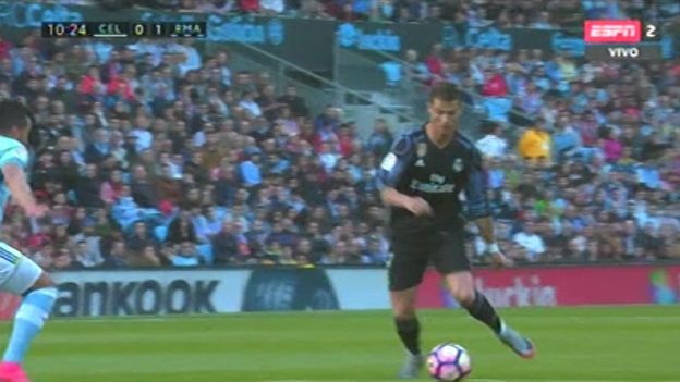 Cristiano Ronaldo se sacó a un defensa de Celta de Vigo y sacó un zapatazo de zurda que congeló al portero, en el choque reprogramado de la Liga Santander.