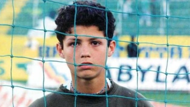 Esta imagen de Cristiano Ronaldo, en sus inicios como futbolista vistiendo la camiseta de Sporting Lisboa, no tendría ningún problema salvo por un detalle en la parte inferior del marco.