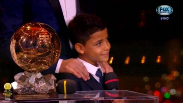 Tras recibir el Balón de Oro, el madre e hijo de Cristiano Ronaldo pasaron al frente para hacer algunas declaraciones sobre el nuevo galardón del delantero.