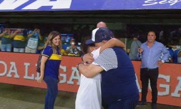 Diego Maradona fue sorprendido hasta las lágrimas por su hija Dalma Maradona en su recibimiento en el estadio La Bombonera previo al partido Boca Juniors vs Gimnasia por la última fecha de la Superliga.