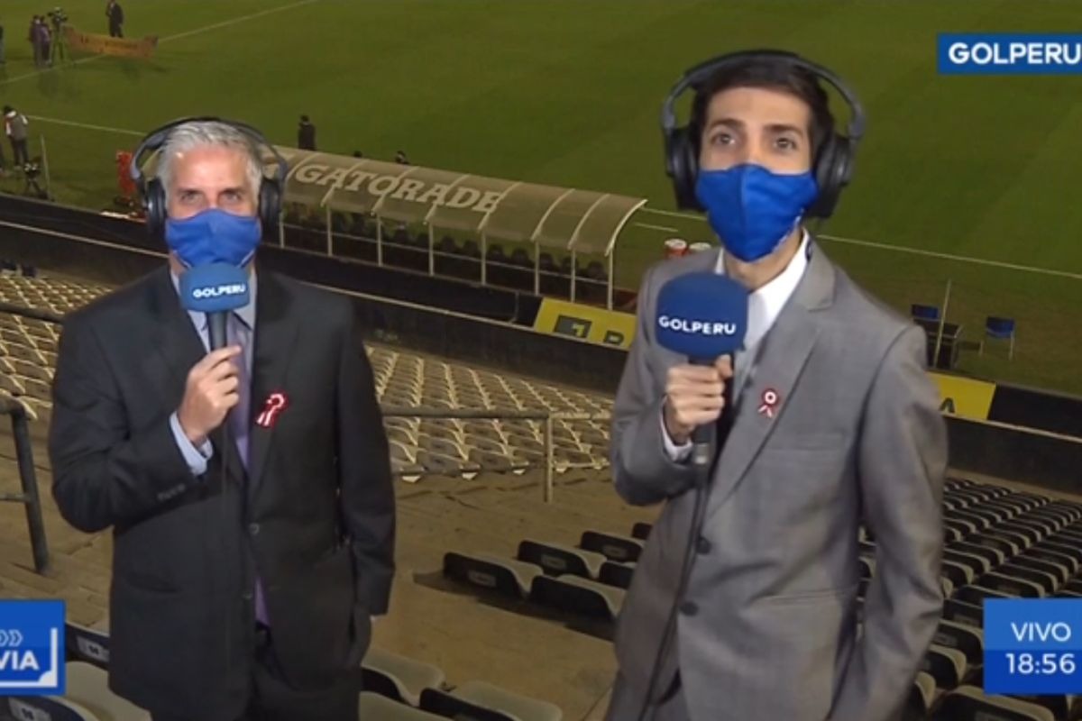 “Cuando usted llegó me dijo: ‘no hace tanto frío’. Pero empezó a caer un poco el clima...”, lanzó Giancarlo Granda en directo, sin imaginar la respuesta por parte de su compañero desde las gradas del estadio. Tremendo momento.