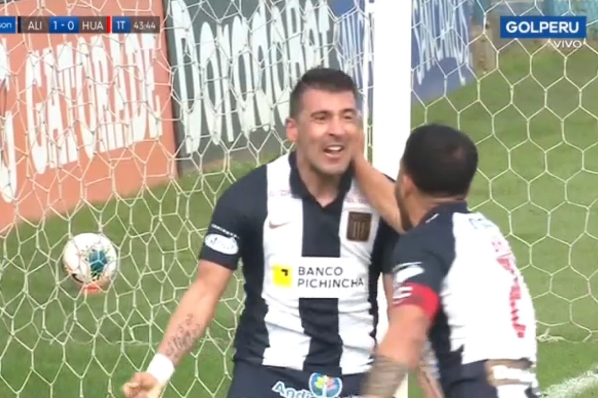 Edgar Benítez, que estaba habilitado, cruzó la pelota y celebró a todo pulmón el gol con Alianza Lima en un partido trabado y con pocas ocasiones de gol. Con la mínima ventaja, el equipo de Carlos Bustos se fue al descanso.