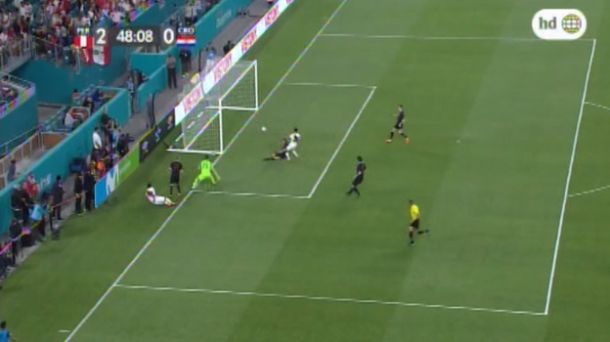 En la previa del gol, Jefferson Farfán corrió hasta el área de Croacia y saltó el esférico para Edison Flores, quien empujó el 2-0 de Perú en Miami.