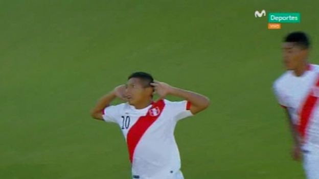 Edison Flores, al ver que ninguno de sus compañeros podía recibir el pase, decidió patear para derrotar las redes de Ecuador desatando la euforia de los hinchas peruanos.