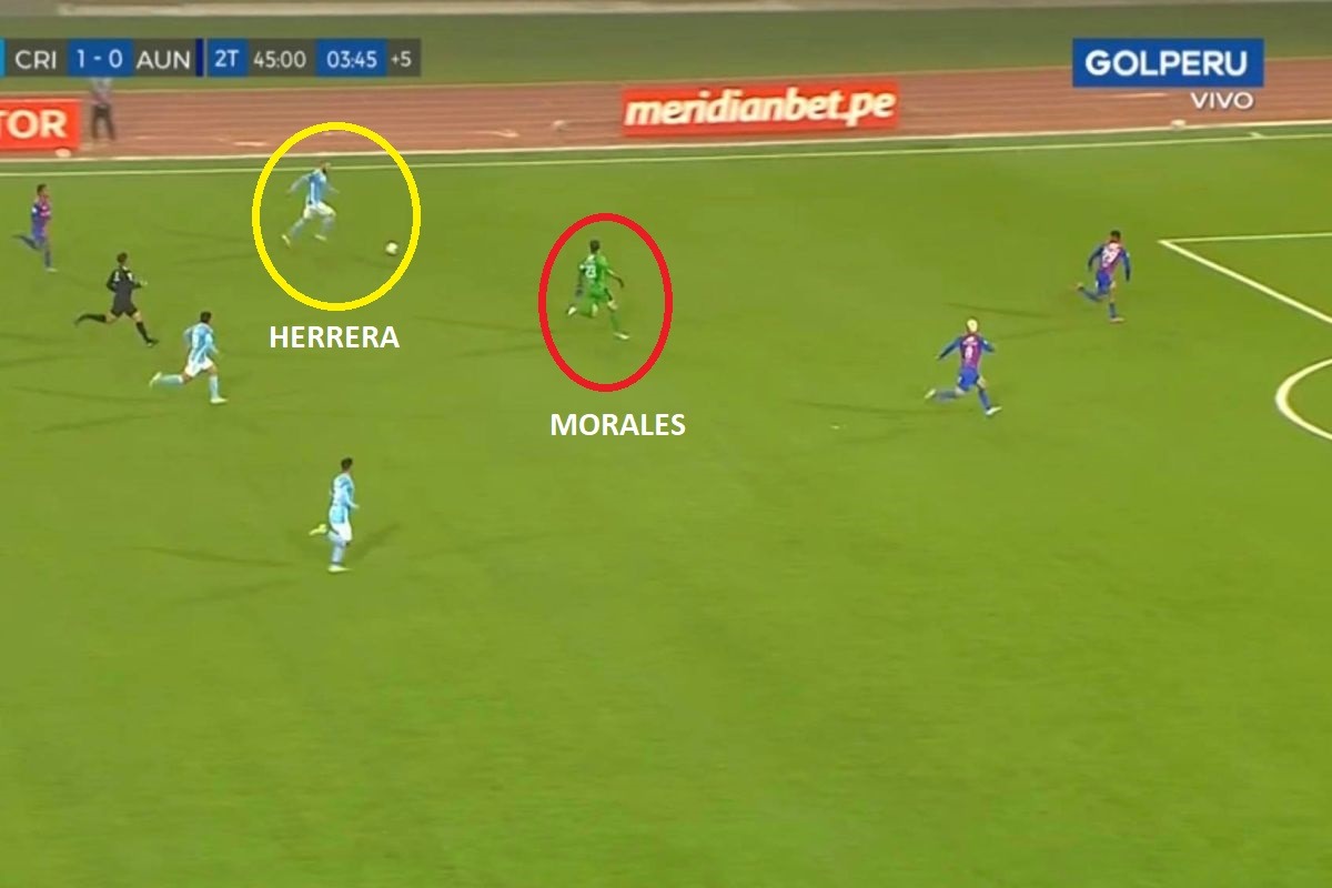 Sporting Cristal rechazó bien el tiro libre de Alianza Universidad y la pelota terminó en los pies de Emanuel Herrera. El goleador pasó la media cancha y definió con calidad.