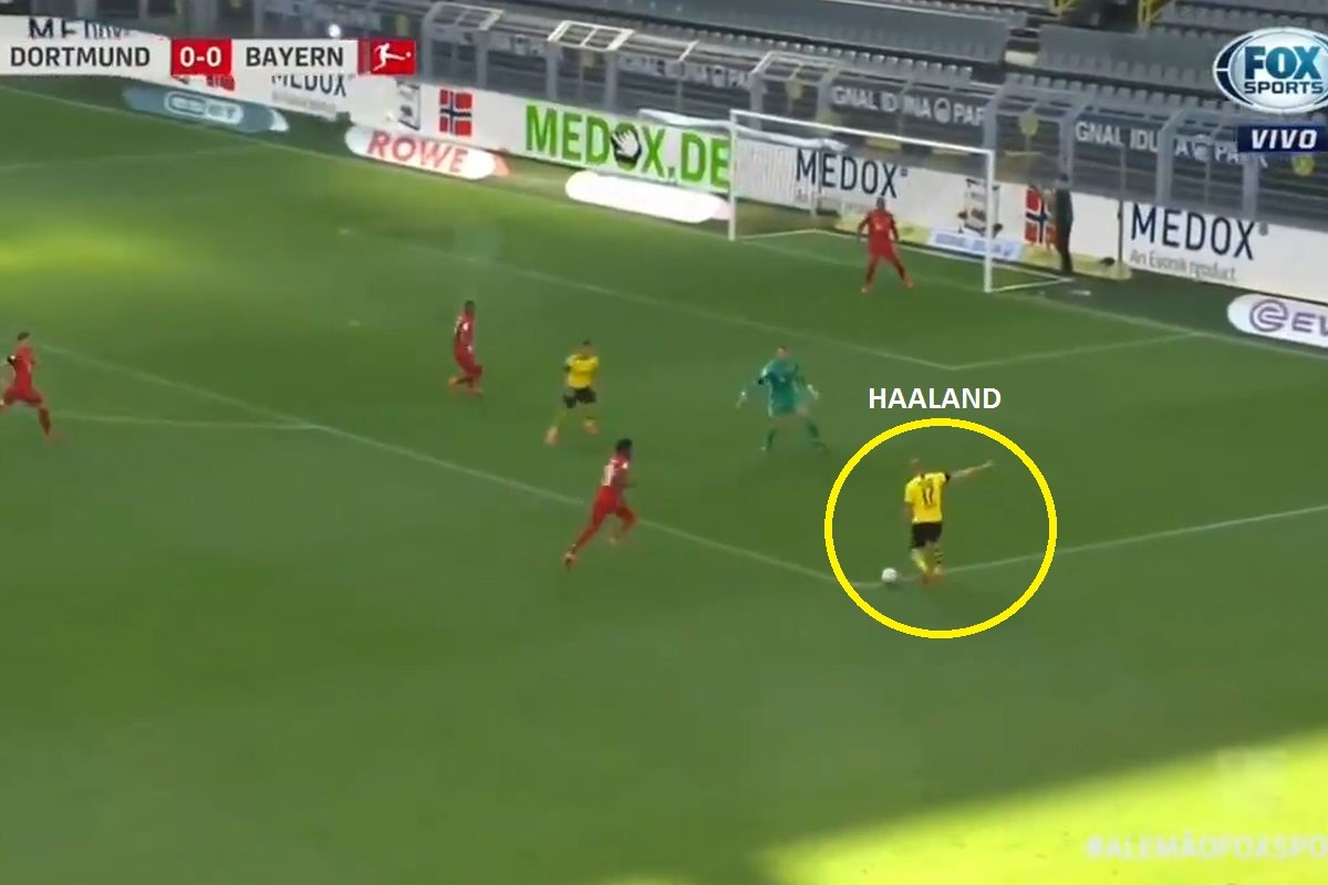 Erling Haaland solo tardó 30 segundos para llevar peligro al arco de Bayern Munich. ‘Robó’ una pelota, ganó en potencia a la defensa rival e hizo pasar la pelota por entre las piernas de Manuel Neuer.