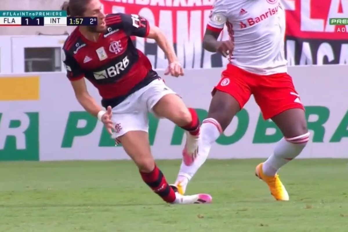 Ocurrió a los 49′ del segundo tiempo. Rodinei le aplicó un fuerte pisotón a Filipe Luis al intentar cortar su ataque en el Estadio Maracaná de Río de Janeiro. El árbitro revisó el VAR y segundo después le mostró la tarjeta roja.