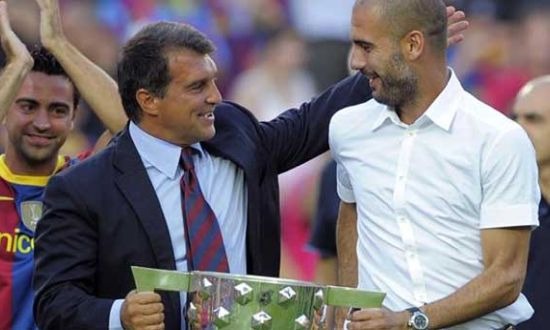 Presidente y jugador coincidieron entre el 2007 y 2010 en el Barcelona. El técnico fue fichado para dirigir el segundo equipo del club y luego de ascenderlo le dieron las riendas del primer equipo. El ‘matrimonio’ Laporta-Guardiola fue exitoso por donde se le mire y la mejor temporada fue la del 2008.