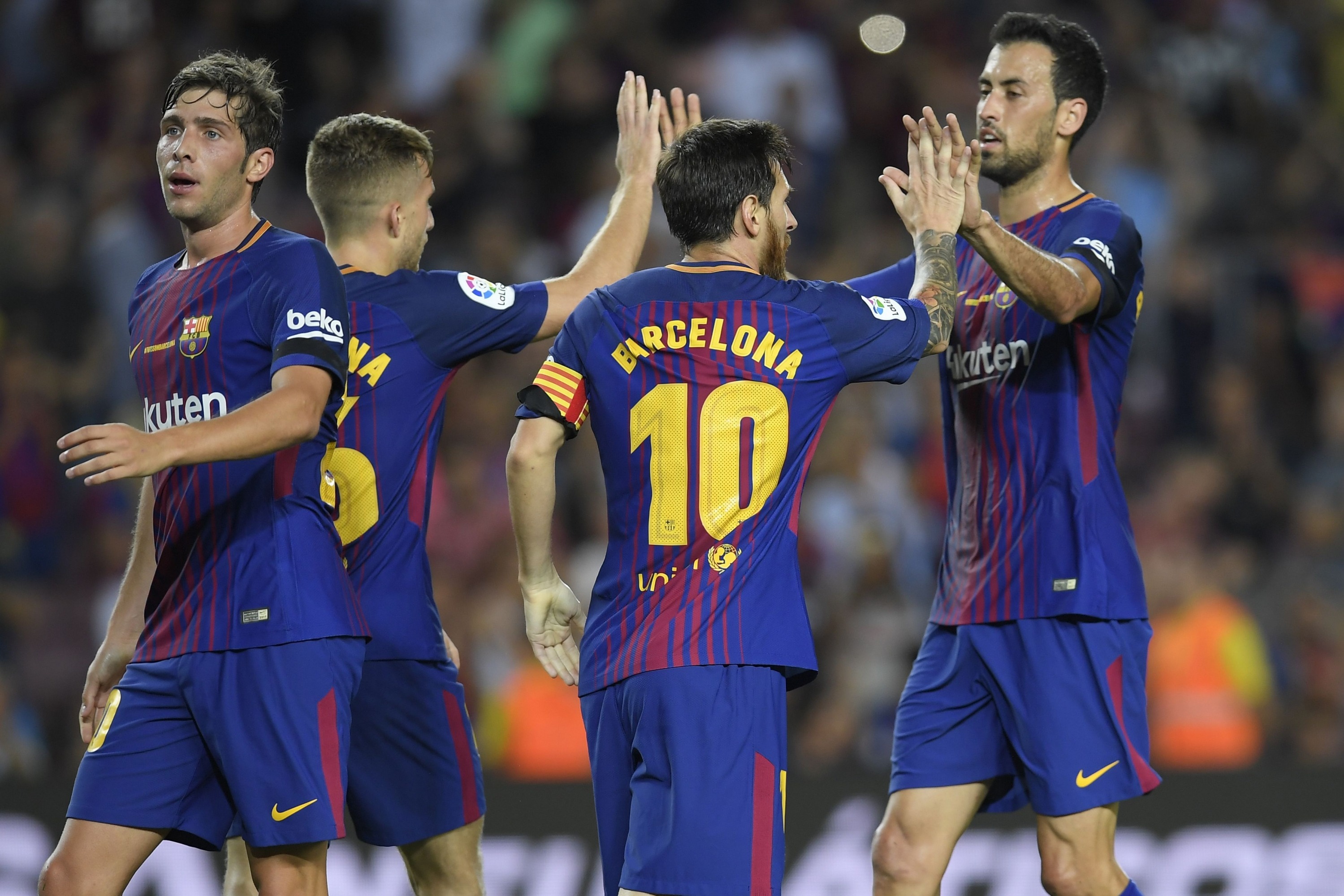 Barcelona: Ter Stegen; Mascherano, Alba, Umtiti, Semedo; Rakitic, Busquets, S. Roberto, Deulofeu; Messi y Alcácer