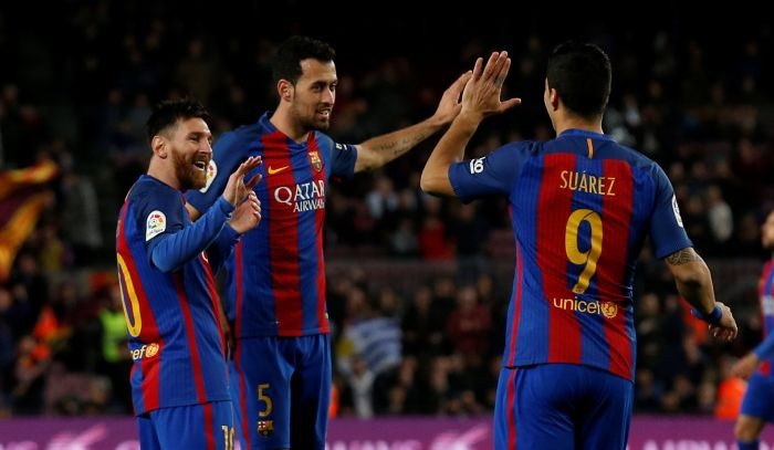 Barcelona: Ter Stegen; Javier Mascherano, Umtiti, Jordi Alba; Sergio Busquets, Rafinha, Denis Suárez, Ivan Rakitic; Neymar, Luis Suárez y Lionel Messi.