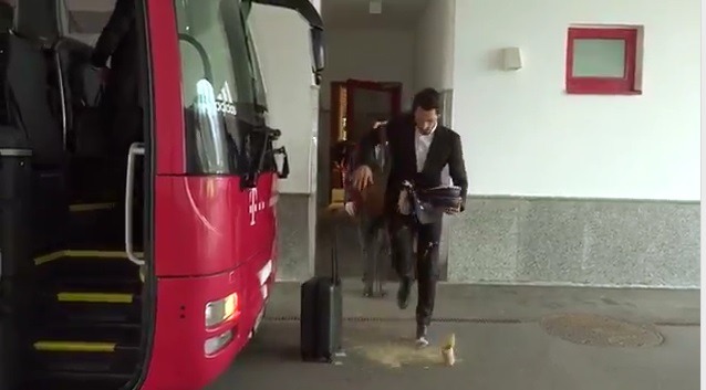 Los jugadores del Bayern Múnich subían uno a uno al vehículo para ir directo al aeropuerto. Todos vestían de traje para viajar al Reino Unido.