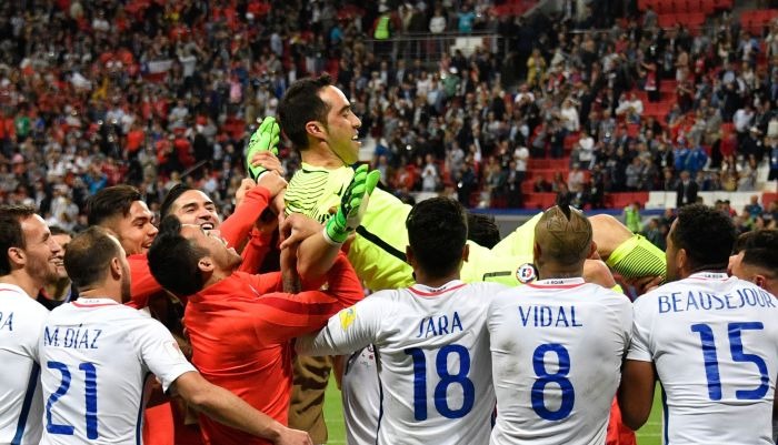 Héroe en las tandas de penales frente a Argentina en las dos últimas finales de la Copa América que ganó Chile (2015 y 2016) al parar en cada una un lanzamiento, el portero Claudio Bravo se superó a sí mismo y paró los tres primeros penales a Ricardo Quaresma, Moutinho y Nani. Por el lado chileno marcaron Arturo Vidal, Charles Aránguiz y Alexis Sánchez.