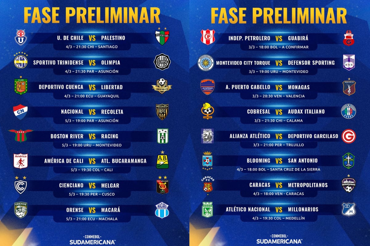 A través de sus redes sociales, la Conmebol hizo oficial el horario de todos los duelos de la Fase 1 entre los que destacan Atlético Nacional vs. Millonarios FC y ‘U’ de Chile vs. Palestino.