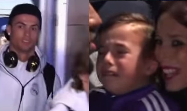 Tras recibir el abrazo de Ronaldo, el pequeño regresó donde su mamá y empezó a llorar de emoción, por cumplir su sueño.