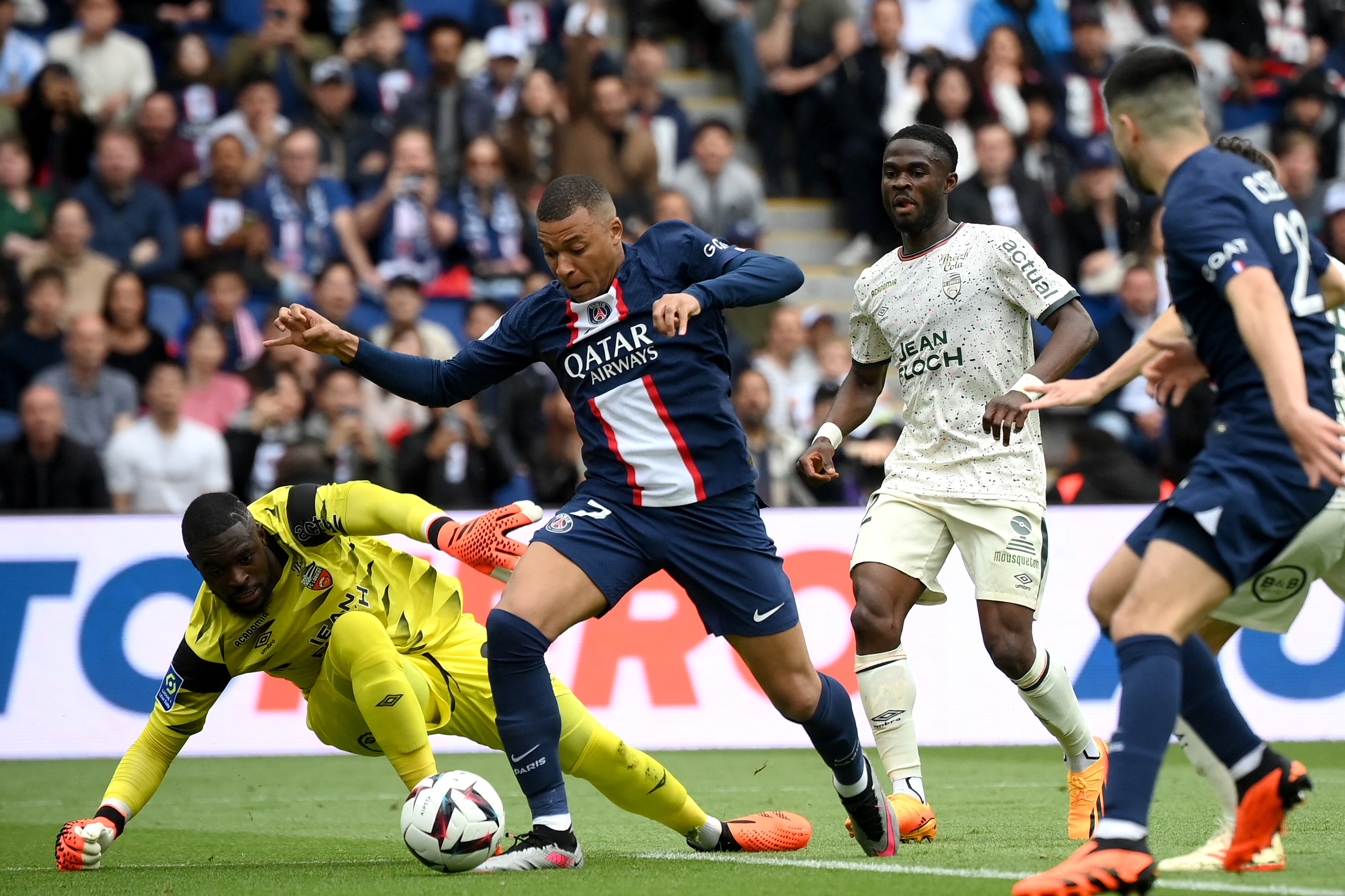 Esto fue aprovechado por Mbappé quien, consciente que la pelota estaba viva y la jugada estaba en marcha, solo empujó el esférico al fondo de las redes. Los jugadores de Lorient rodearon al referí para reclamarle pero no hubo vuelta atrás, el blooper del portero sentenció el empate momentáneo.