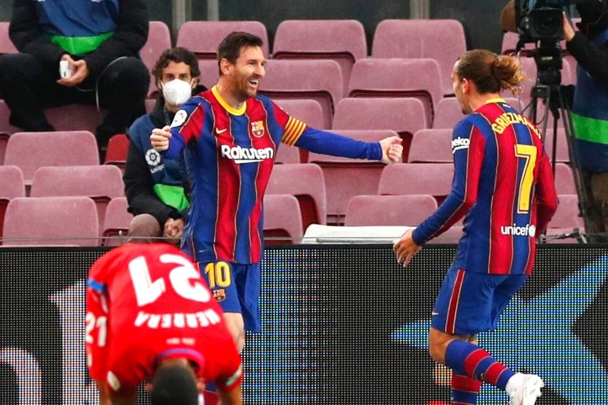 El argentino buscó el talento de Antoine Griezmann, sobre los 23 minutos. El francés recibe el balón en el borde del área, aguantó a la defensa visitante y tras un giro genial, devolvería a pelota al capitán quien de remate cruzado pondría el primero en el Camp Nou.