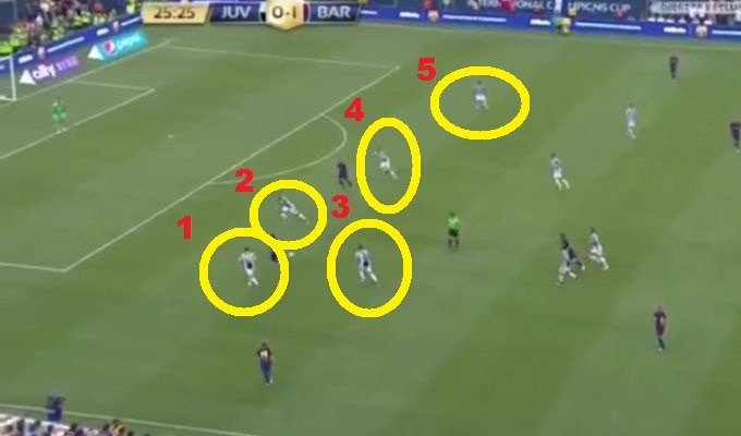 Y pasaron delante de Neymar: Lichtsteiner, Benatia, Sturaro, Barzagli, Asamoah y Khedira. Todos burlados, sin poder siquiera tocar el balón para que el brasileño le anote a un incrédulo Buffon. Tremendo golazo.