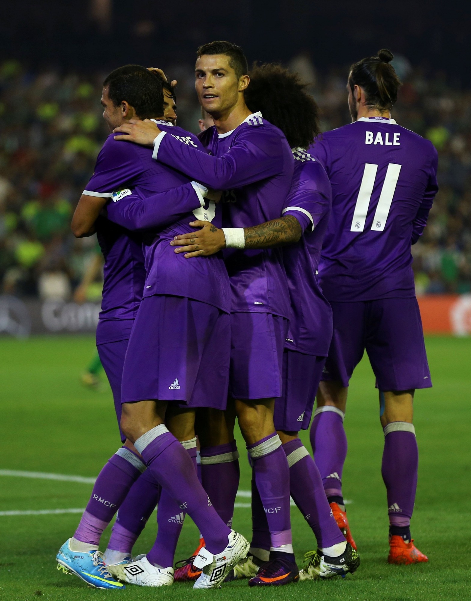 Real Madrid: Keylor Navas, Carvajal, Pepe, Varane, Marcelo; Toni Kroos, Kovacic, Isco; Gareth Bale, Karim Benzema y Cristiano Ronaldo.